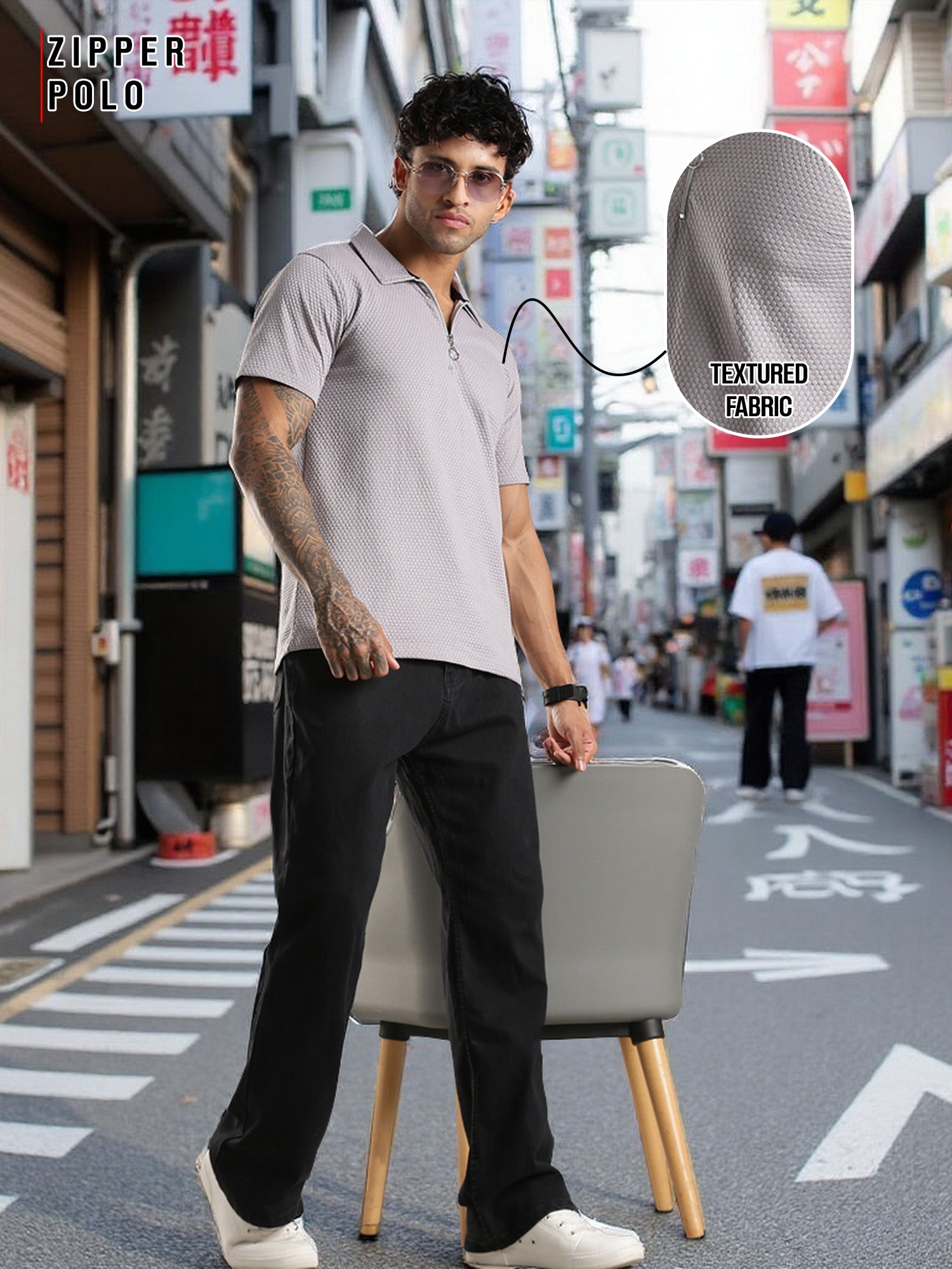 fanideaz Mens Jacquard Tshirt and Modern Zipper Polo T-Shirts for Men