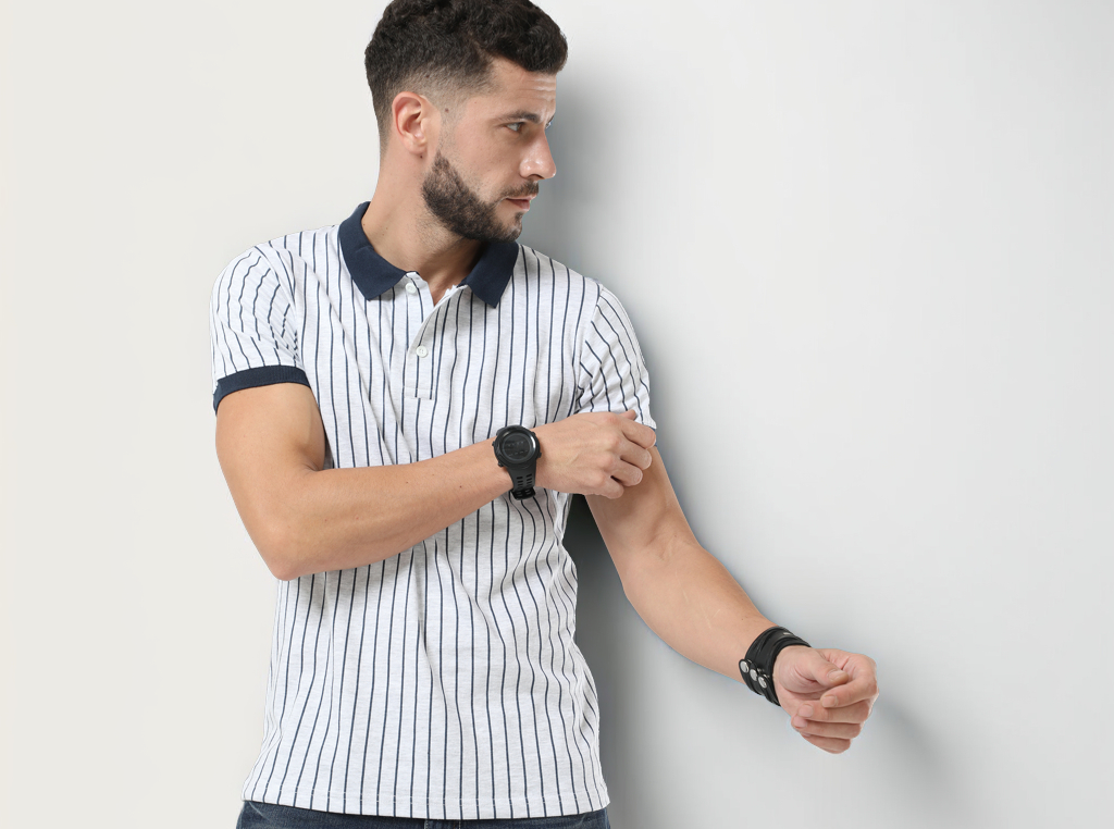 fanideaz Mens Half Sleeve Cotton Striped Branded Polo T-shirt for Mens